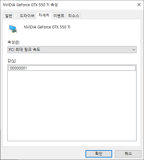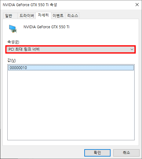 PCI 최대 링크 너비 경우 배속을 의미하며, 1은 1배속, 4는 4배속 10은 10배속 이다.
