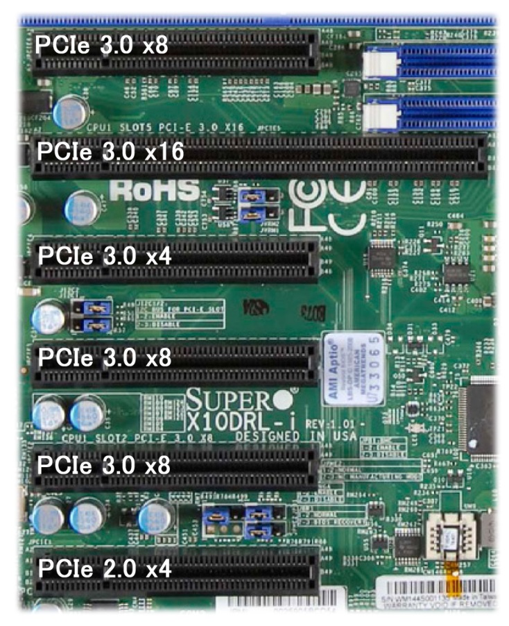 메인보드의 포트는 위와같은 모양새를 하고있으며, 레인의 길이가 길어짐에따라 데이터 전송률은 올라가며, 보다 더 빠른 처리속도를 보여줄 수 있다.