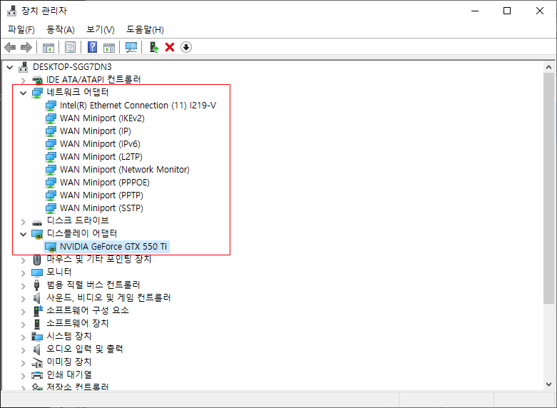랜카드가 이용된다면 네트워크 어댑터, 그래픽카드가 이용된다면 디스플레이 어댑터를 선택하여 속성을 이동하면 아래와같은 화면이 확인된다.