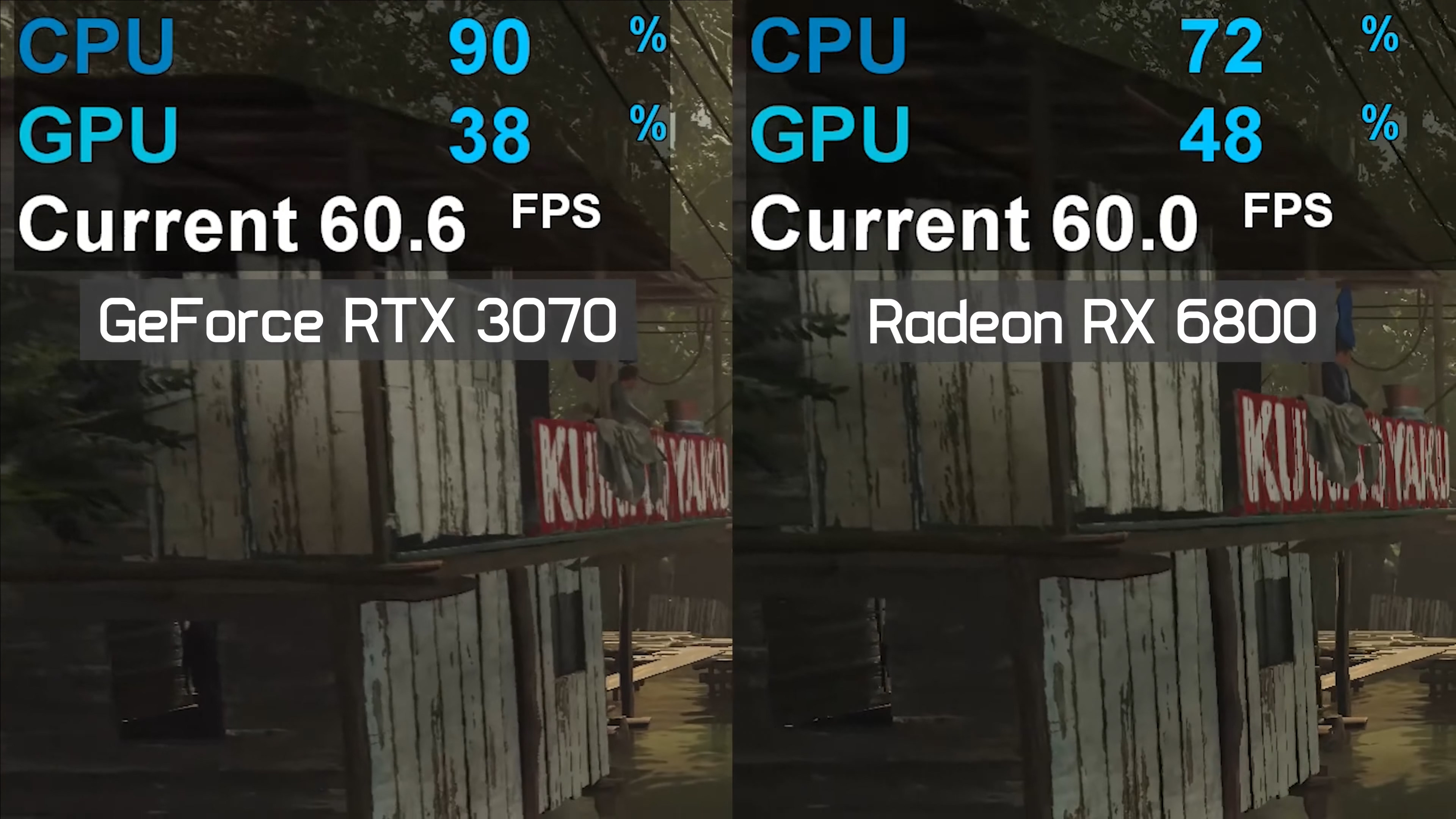 위의 경우 동일 성능에서의 각 그래픽카드의 비교로 같은 프레임을 보여줌에도 불구하고 GeForce 제품군에서는 보다 더 많은 CPU의 사용량을 보여주게 되어 같은 성능시에 AMD가 더 높은 성능을 보여주는 예시도 나오고 있어 많은 추격이 이뤄지게 되어 쌍벽을 이루고 있다.