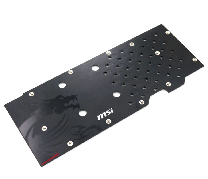그래픽카드 쿨러가 장착되어있는 반대면인 뒷면 에 플라스틱 재질 또는 메탈소재를 이용하여 이물질이 쌓이거나 기판의 발열해소 그리고 기판의 휨 방지 목적으로 설계되어 출시되었지만 쿨러의 성능이 좋지않고 게다가 백플레이트 조합으로 발열해소가 되지않는 경우 목적과 다르게 반대로 성능이 더 저하되는 케이스도 있으므로 무조건 백플레이트가 포함되어 있다 하여 좋다라고 표현하기는 어렵다.