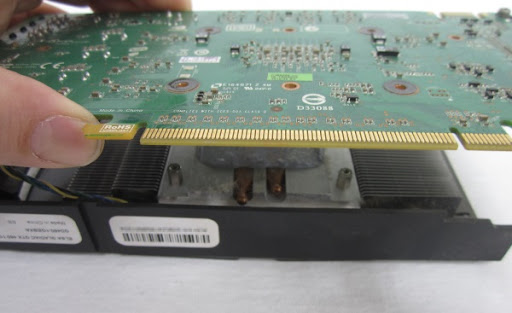 기판에는 GPU가 용접되어 있고, 그 윗부분에는 CPU와 마찬가지로 발열의 해소를 위해 방열판이 맞닿아 조립되어 있으며 제품마다 상이하지만 이를 고정하는 나사를 해체한다면 위의 이미지와 같은 모습을 살펴볼 수 있으며 GPU에도 마찬가지로 서멀구리스가 도포되어 맞닿아 있다 CPU와 마찬가지로 발열이 심한 장치중 하나로써 제품마다 상이하지만 팬이 1개부터 3개까지 또는 수냉쿨러의 구조를 채택하여 사용하는 사용자또한 존재한다.