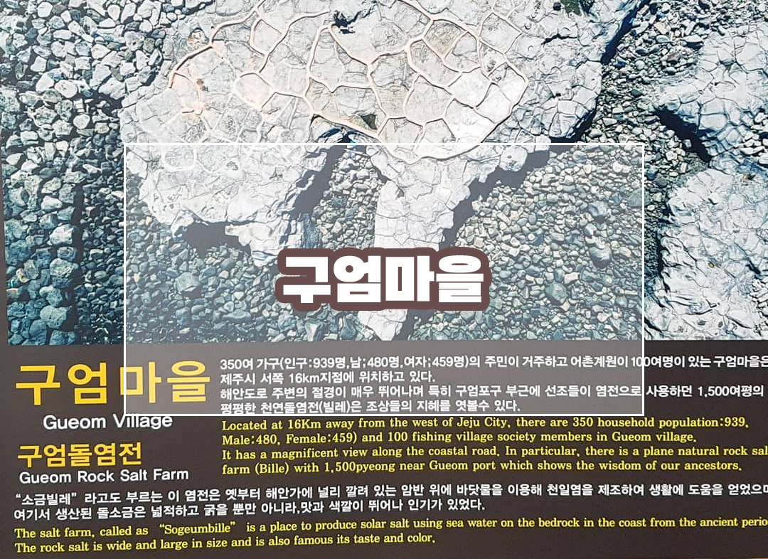 햇볕을 이용하여 바닥물을 이용해 소금을 제조하는 돌 염전 장소로 소금밭을 '소금빌레' 라고 불리우면서 소금밭은 마을의 생업터전으로 유지되다 1950년대에 이르러 소금밭의 기능을 잃었다고 합니다