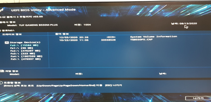 업데이트 전, 현재 메인보드에서의 내장되어 있는 바이오스 버전에 대해 체크 필요하며 최신버전과 같은 버전이 내장되어 있다면 궂이 업데이트를 할 필요는 없으므로 참고하도록 한다.