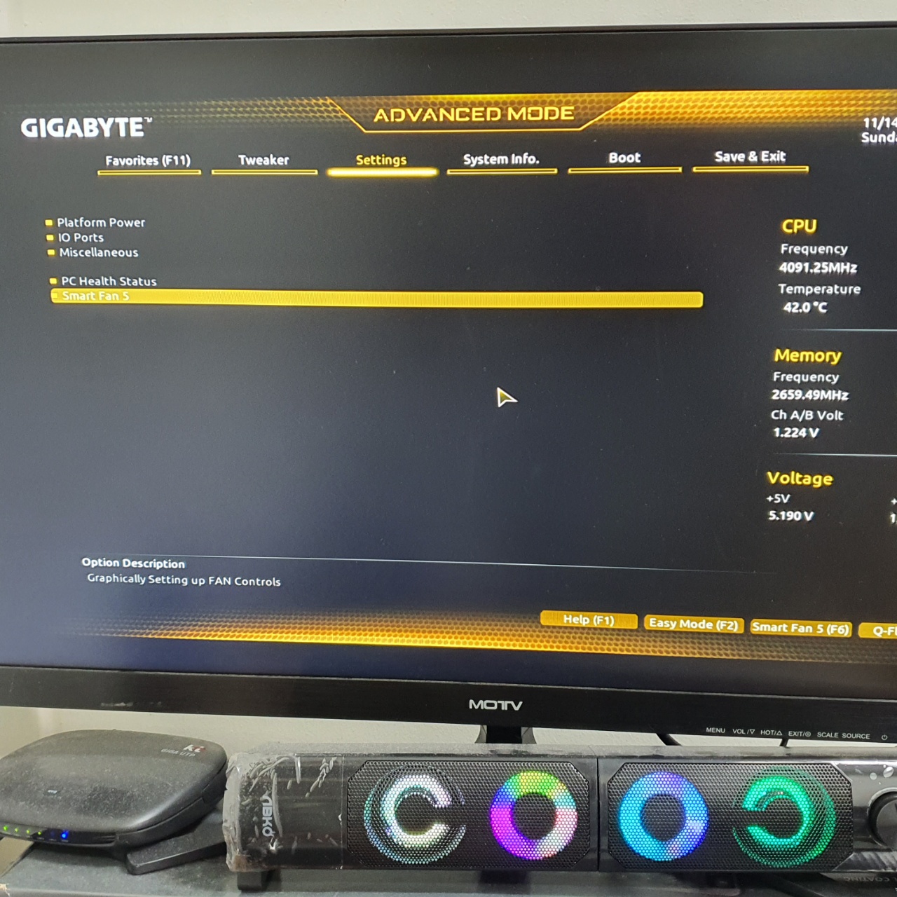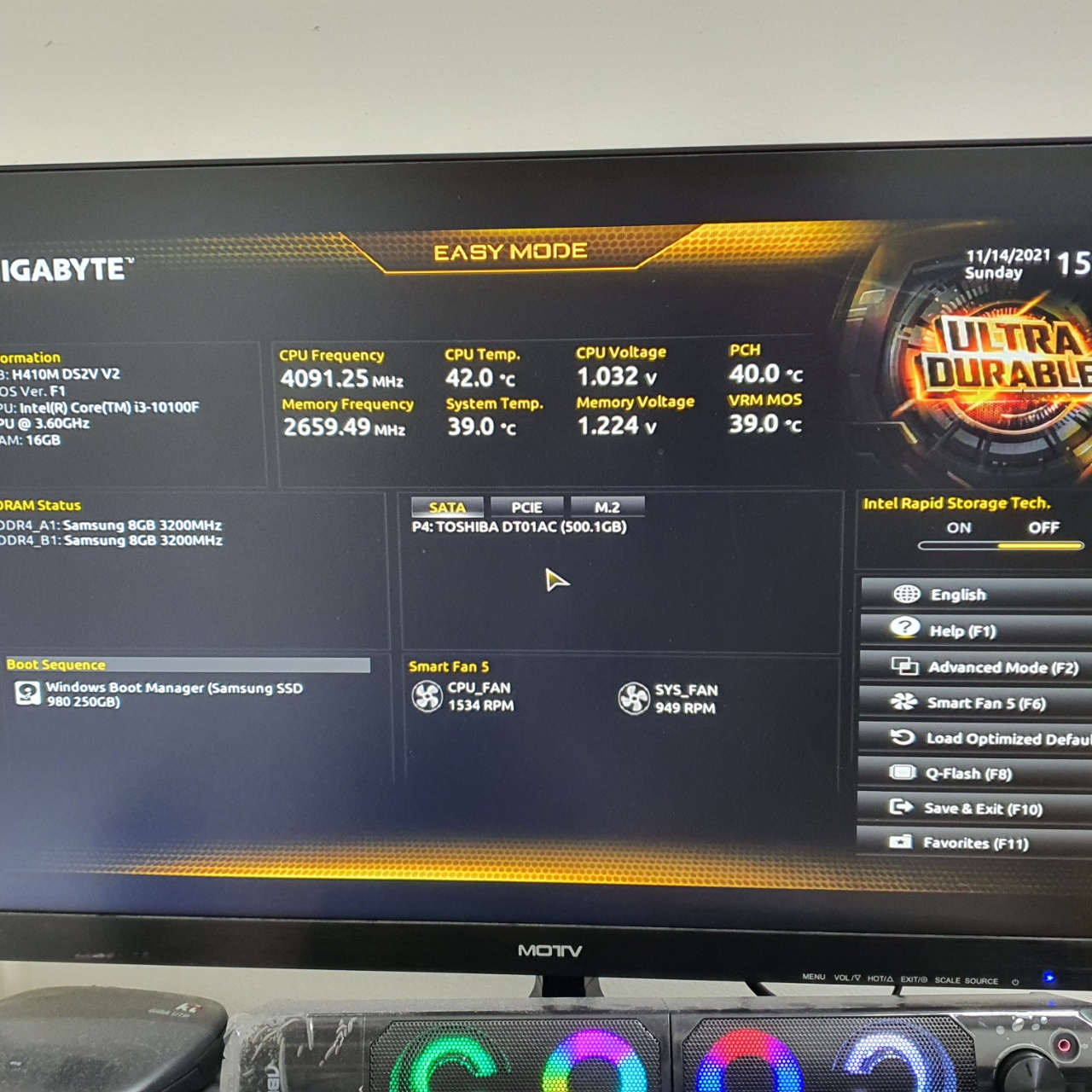 바이오스 진입시 첫 화면은 EASY MODE로 진입되어 F2버튼을 눌러 고급설정 화면으로 이동할 수 있다