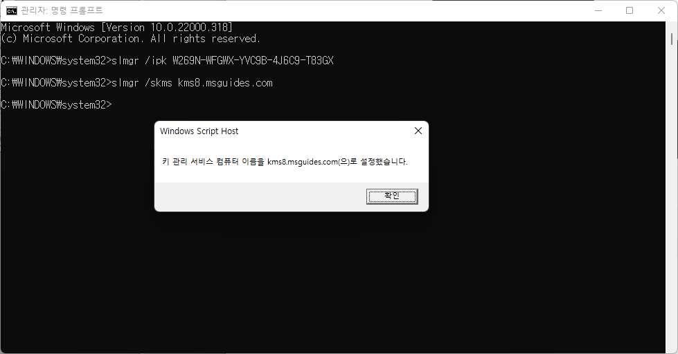 KmsAuto CMD 명령어를 통한 정품인증 방법