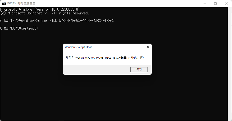 | Windows 11 Pro | slmgr /ipk W269N-WFGWX-YVC9B-4J6C9-T83GX |