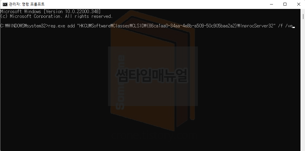 레지스트리 값을 편집하기 위해 명령 프롬프트 를 관리자 권한으로 실행하도록 합니다
