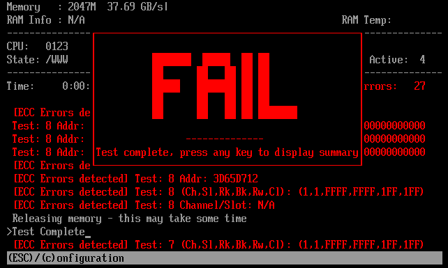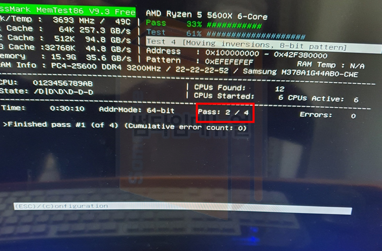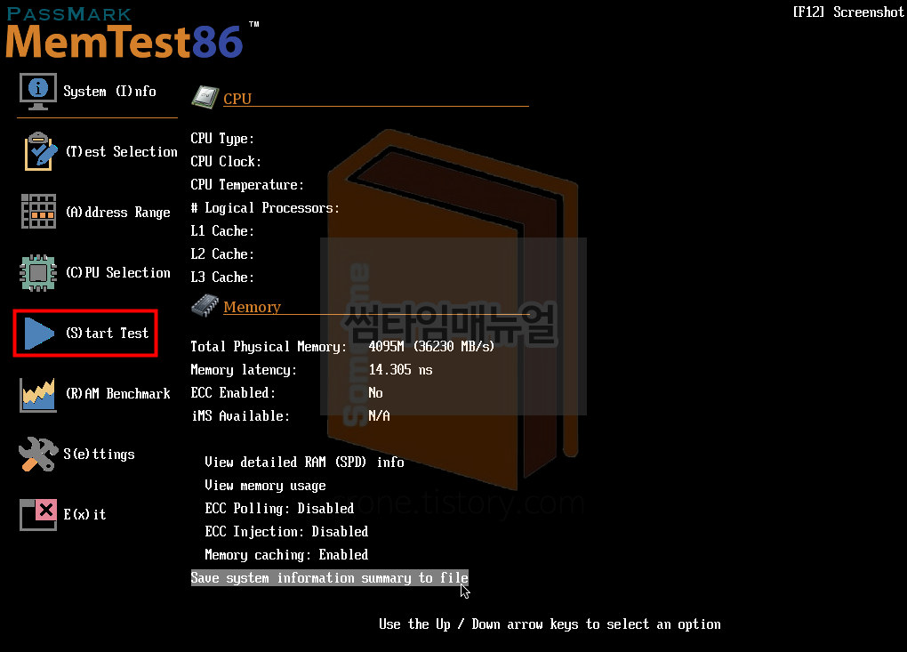휘발성 메모리로 불량율이나 고장날 확률은 굉장히 낮은편이지만 낮은 확률로 메모리도 불량을 일으키며 메모리가 문제가되는지의 여부는 여러가지의 툴로 확인이 가능하지만 가장 대표적인 방법으로 memtest86 툴을 이용합니다