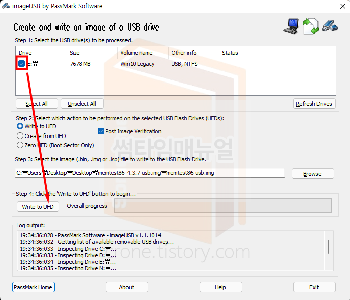 USB 저장장치를 선택한 뒤 Write to UFD 버튼을 누르면 이미지파일을 부팅디스크로 변환하는 작업을 거치게 되며 완료시에는 시스템을 부팅 시 방금 만들어낸 부팅 디스크로 부팅을 시도 하도록 하며 부팅설정은 메인보드의 바이오스 설정을 통해 설정이 가능합니다