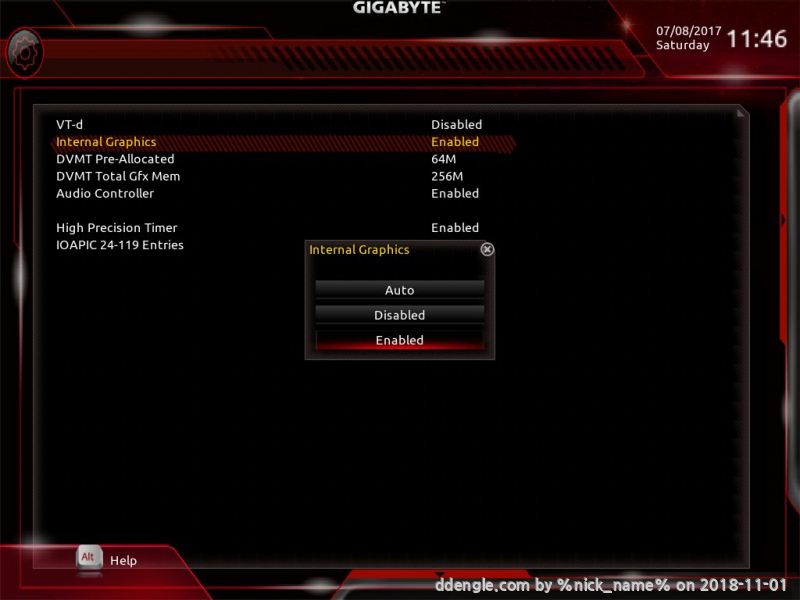 2. Internal Graphics 항목 선택