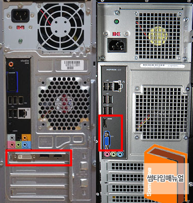 좌측의 데스크톱은 그래픽카드가 장착된 모델이고, 우측의 데스크톱은 그래픽카드가 장착되지않은 내장그래픽으로 동작되는 시스템 입니다