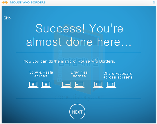 메인 PC에서는 위와같이 연결이 시도되었다고 확인되며 Next 버튼을 눌러 공유를 시작 합니다
