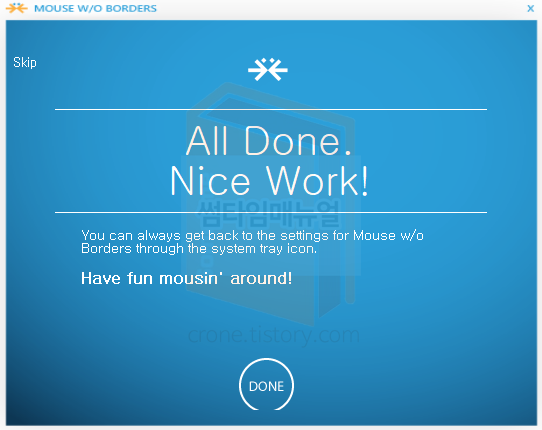 해당 툴을 설치한다면 위와같은 화면이 확인되며 위의 화면은 제어시도를 하는 PC인지를 묻는 창 이므로 메인이 되는 PC에서는 No 버튼 클릭을, 서브가 되는 PC에서는 Yes 버튼 클릭을 진행하여 다음으로 넘어 갑니다