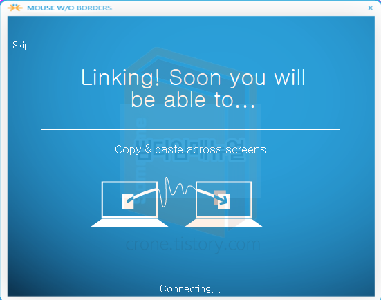 연결 시도시 서브 PC에서는 위와같이 연결중으로 연결을 기다립니다