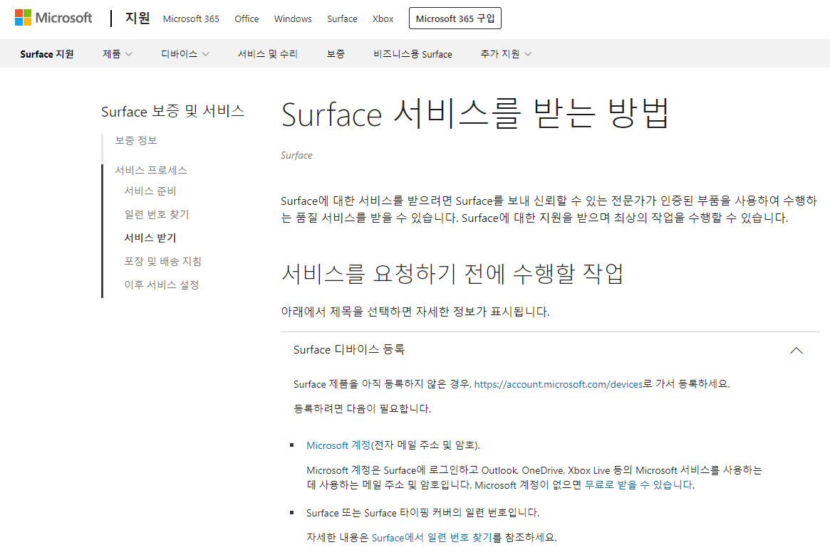 Surface 서비스를 받는 방법