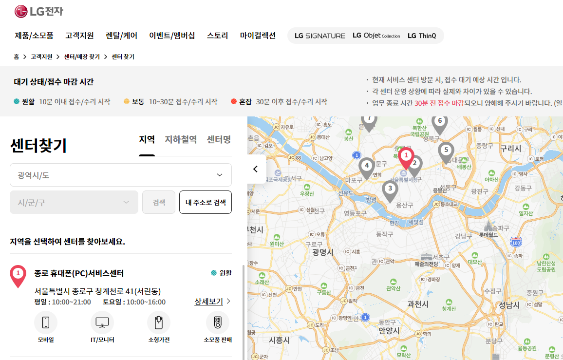 센터 찾기 | LG전자 고객지원