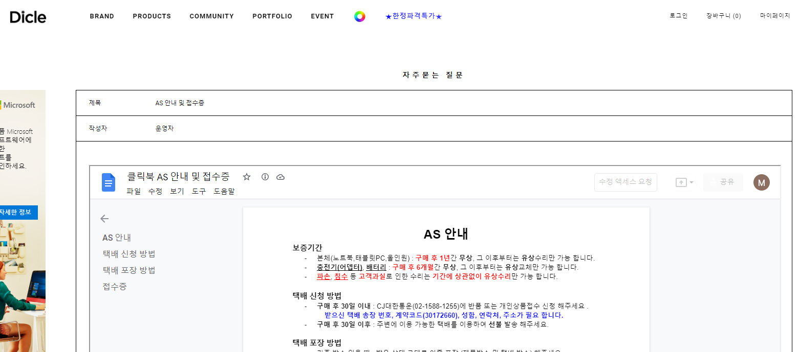 AS 안내 및 접수증자주묻는 질문 - 예쁜 가성비 디클 클릭북