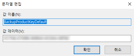 BackupProductKeyDefault 값의 데이터를 살펴보면 현재 적용되어있는 값의 확인이 가능합니다