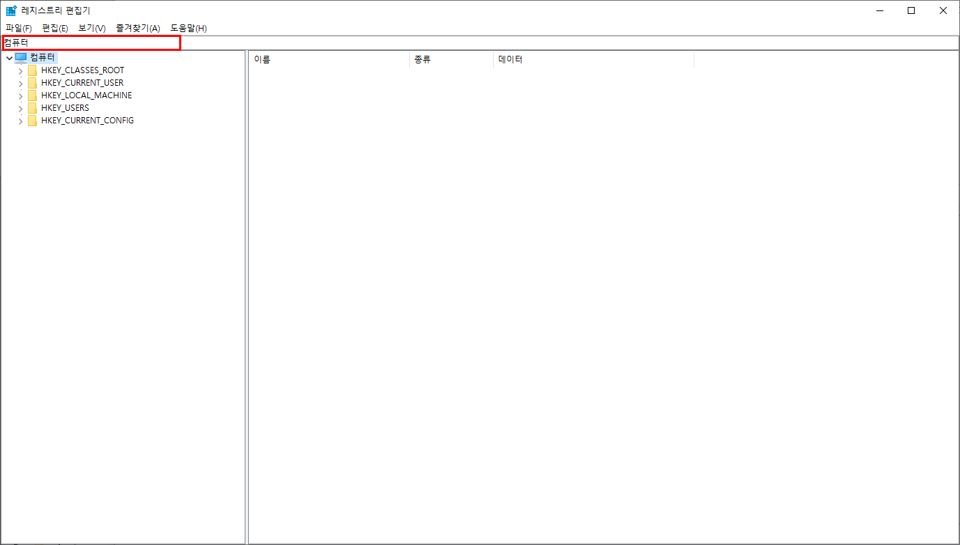 레지스트리 편집기로 이동하여 주소창에 아래의 경로를 입력합니다