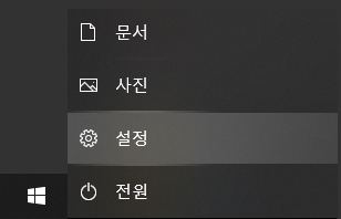 윈도우즈의 시작버튼을 눌러준 뒤 톱니바퀴의 "설정" 항목을 선택해 줍니다