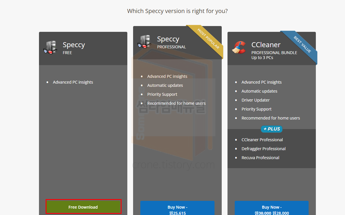 단순하게 시스템 정보만 확인할 목적으로 Free버전으로도 시스템 정보 확인이 가능하므로 위의 Free 항목에서 Download 버튼을 눌러줍니다