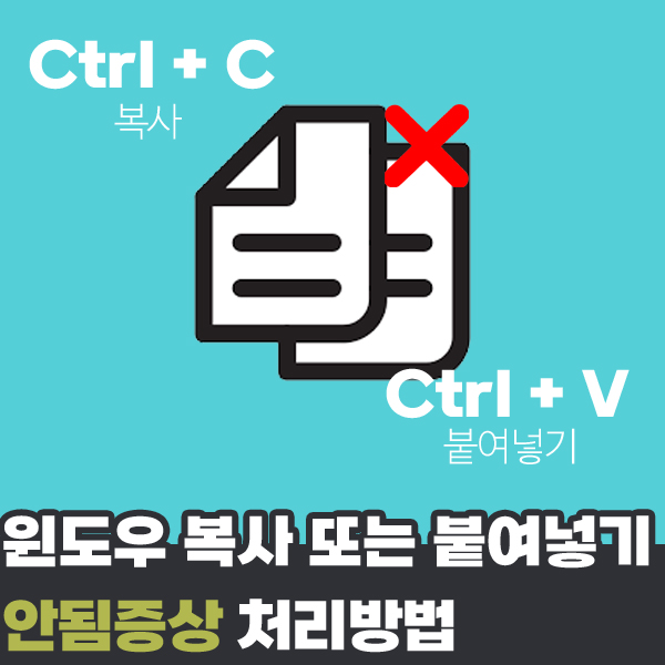 여러가지 방법으로 시도를 해봤지만 도무지 알수없는 경우라면 복사, 붙여넣기의 경우 가장 기본이 되는 기능중 하나이므로 초기 윈도우설치시 부터 문제가되는경우는 없으므로 문제가 지속된다면 기존의 자료들은 백업 진행 후 새롭게 윈도우를 설치해보는것 또한 방법이 되겠습니다