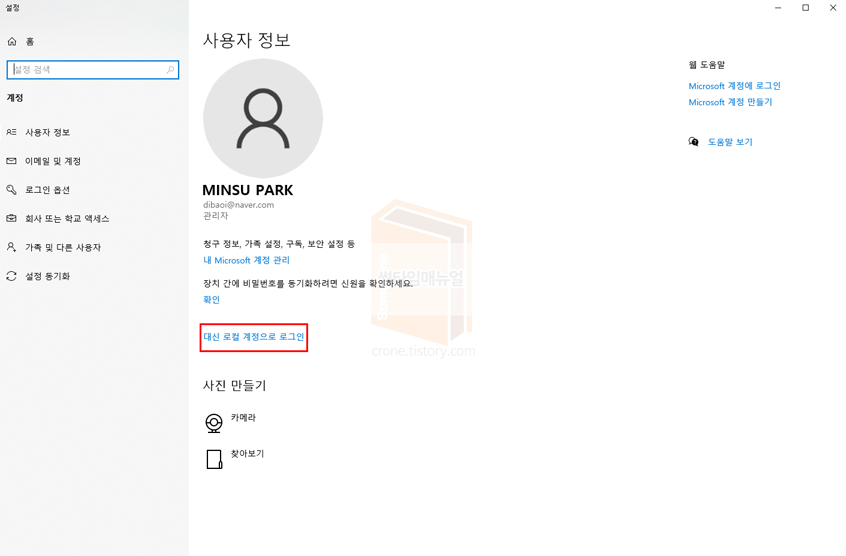 사용자 계정을 새로 추가하여 해당 계정에서 사용하도록 합니다