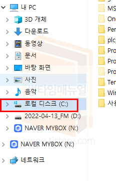 탐색기를 열어 운영체제가 설치된 C 드라이브 항목에 우클릭 버튼을 누릅니다