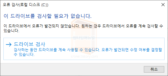 - 디스크 검사 실행 하기