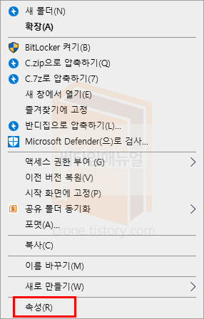하단의 "속성" 항목을 선택합니다
