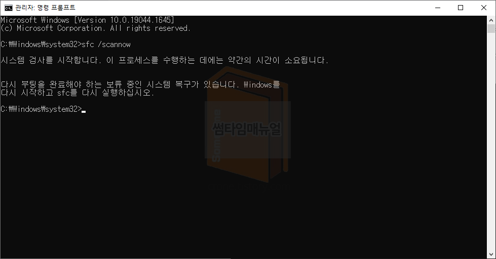 이미지 점검 절차가 100%까지 완료된다면 시스템을 재부팅하여 확인하도록 합니다