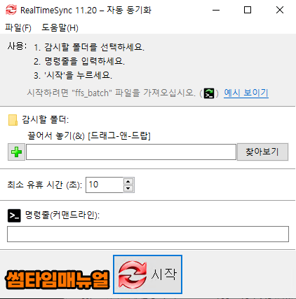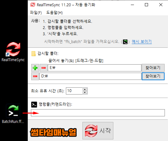 프로그램을 설치할 때 바탕화면에 바로가기가 같이 만들어진 RealTimeSync는 자동으로 동기화를 설정하기 위한 프로그램 입니다