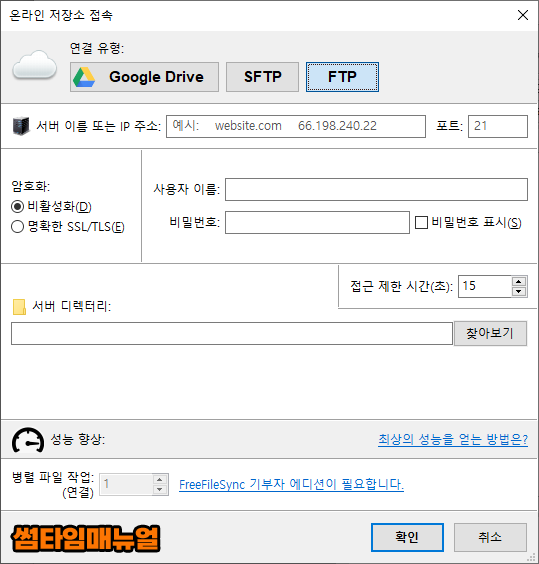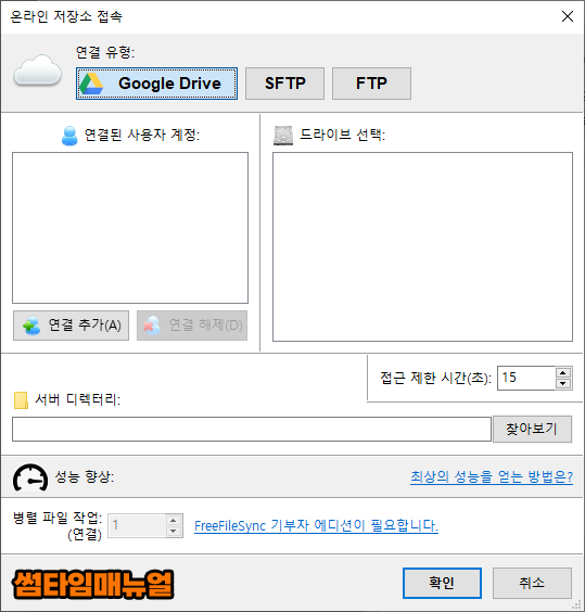 해당 프로그램이 동기화에 적합한 이유는 무료버전이지만 FTP서버, SFTP, 구글드라이브 저장공간에도 동기화가 가능하도록 설정이 가능합니다