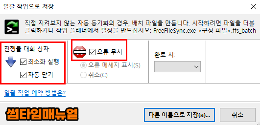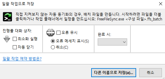 일괄 작업으로 저장 창이 확인된다면 "다른 이름으로 저장" 을 선택합니다