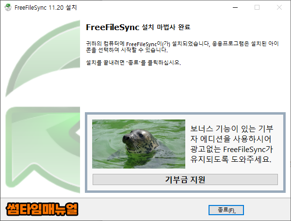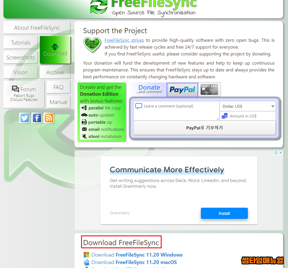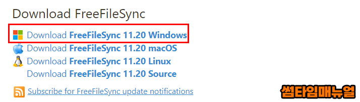 윈도우 버전의 FreeFileSync 프로그램 선택 하여 다운로드 시작