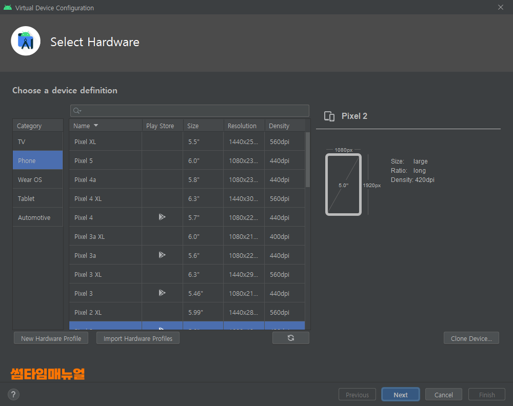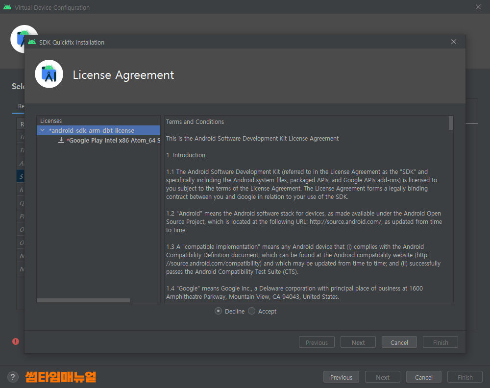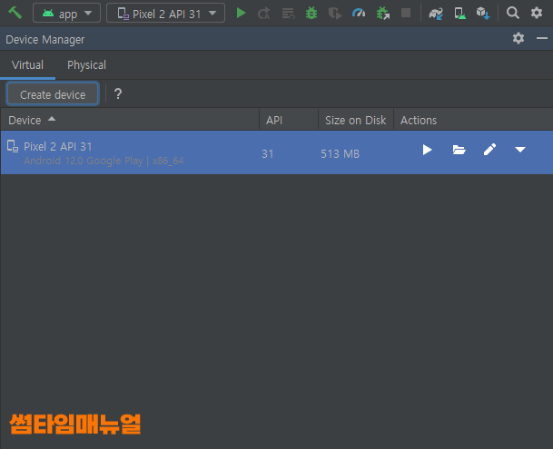 Virtual Device Manager 설정 진행 방법