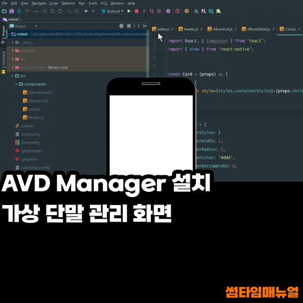 Android Virtual Device Manager 의 약자로써 안드로이드 스튜디오 에서 제공하는 가상 단말장치를 의미하며 별도의 설치 과정이 필요없이 안드로이드 스튜디오를 설치하였다면 기능으로 제공하고 있기 때문에 간편하게 어떠한 안드로이드 버전을 사용할 것 인지와 어떤 가상 장치를 사용할 것인지의 설정만 진행해준다면 간편하게 사용할 수 있습니다