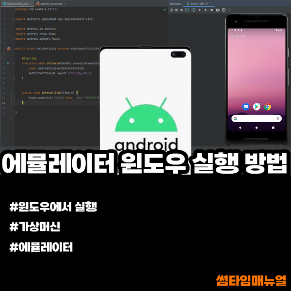 에뮬레이터는 직접 개발한 소스를 실제 안드로이드 스마트폰에서 미리 실행해봄으로써 코드가 잘 작성되었는지 체크해볼 수 있는 유용한 툴 입니다 안드로이드 스튜디오를 설치시 자동으로 해당기능은 지원하고 있지만 안드로이드 스튜디오 자체 화면에서 추가된 모습 외에 윈도우에서 따로 실행할 수 있는 설정 방법에 대해 알아보도록 하겠습니다