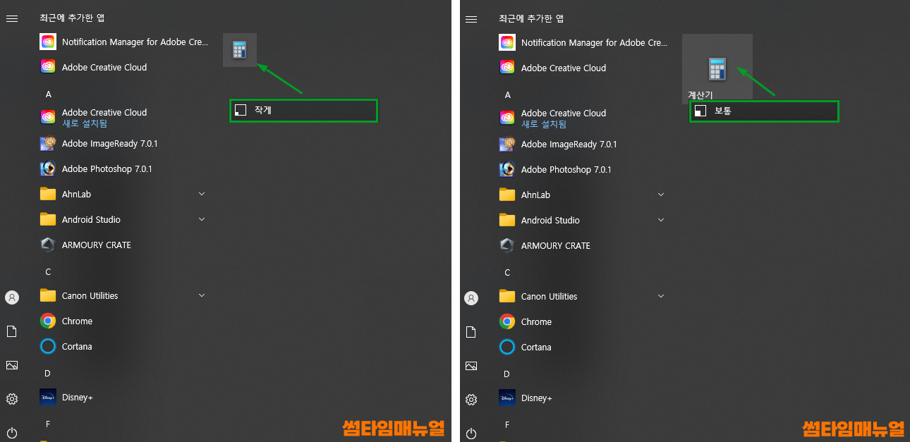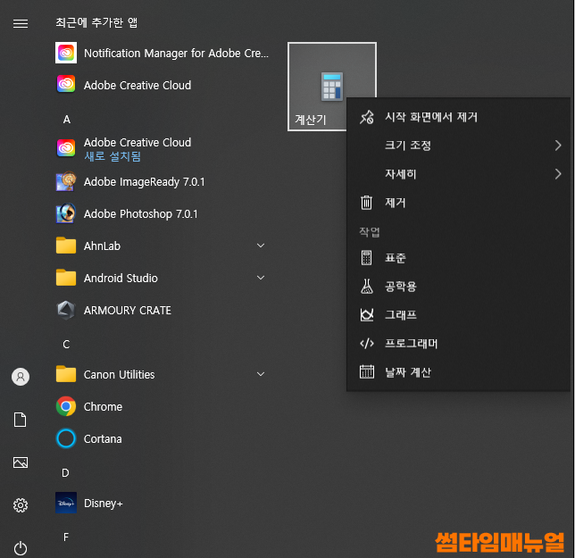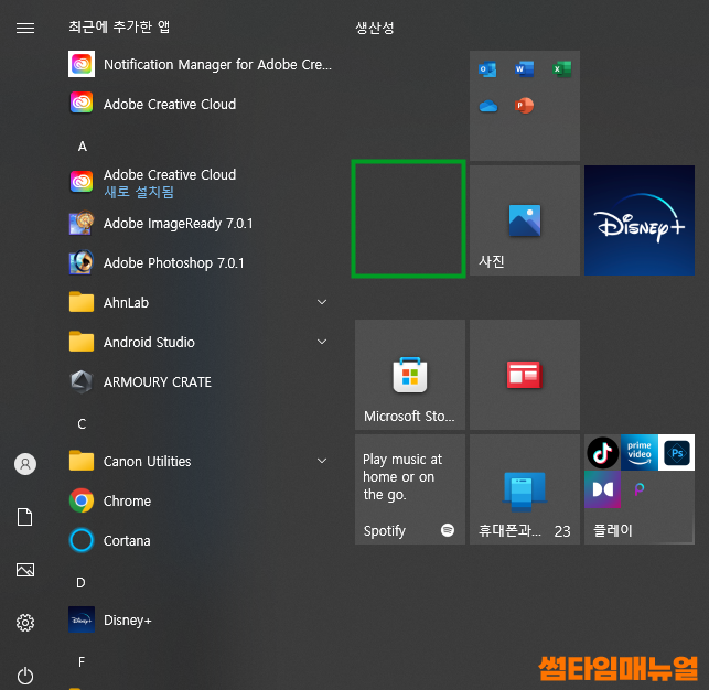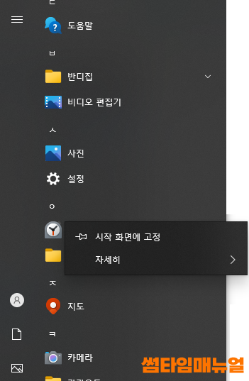 라이브타일 시작화면 고정 방법