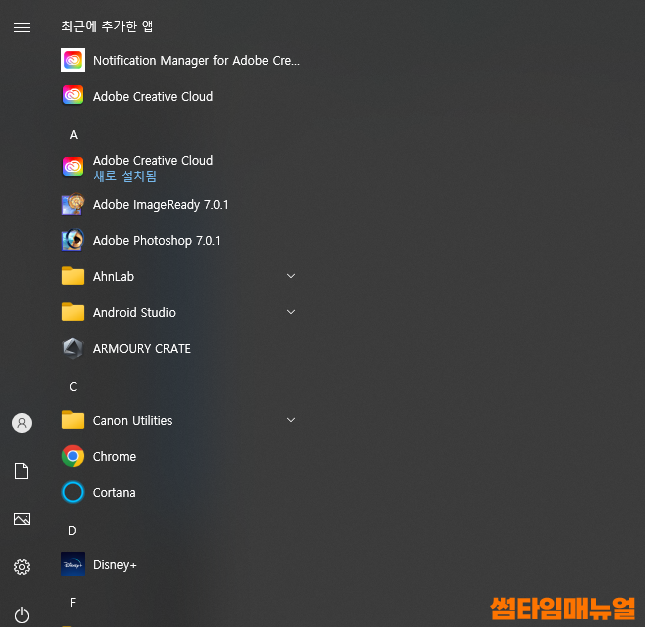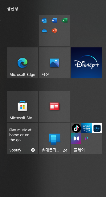 라이브타일 제거된 모습