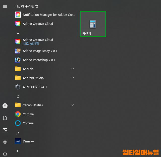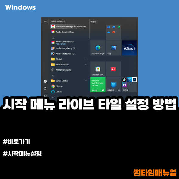 시작메뉴의 라이브 타일