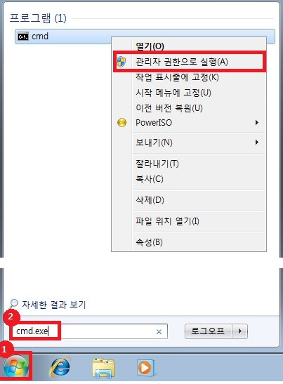 cmd를 입력해주고, 관리자 권한으로 실행시켜줍니다.