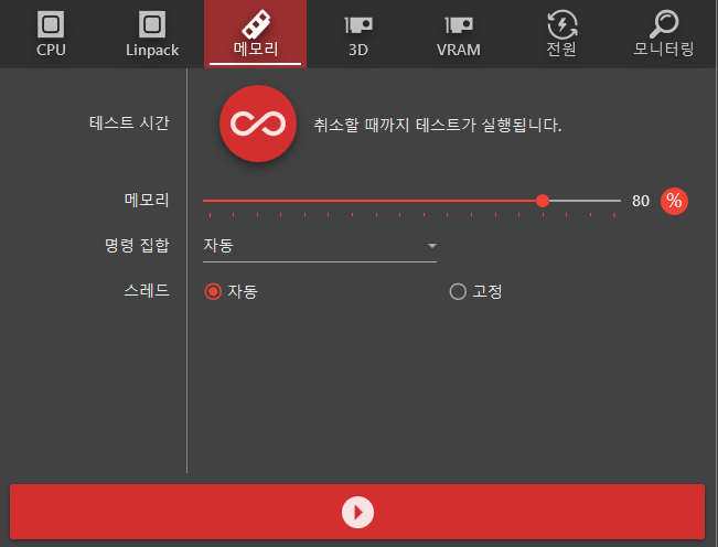 주로 사용되는 테스트 장치는 CPU, 메모리, 3D(그래픽카드) 입니다 특히 오버클럭을 한 경우라면 최고성능으로 테스트진행하여 문제는 없는지 체크해봐야 하며 다운되거나, 문제가 발생된 경우 오버클럭 값을 낮춤으로써 다시 테스트를 해볼 수 있습니다