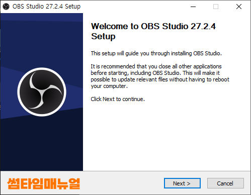 설치프로그램을 실행한다면 위와같이 설치 화면확인이 가능하며 "Next >" 버튼을 눌러 다음으로 이동합니다