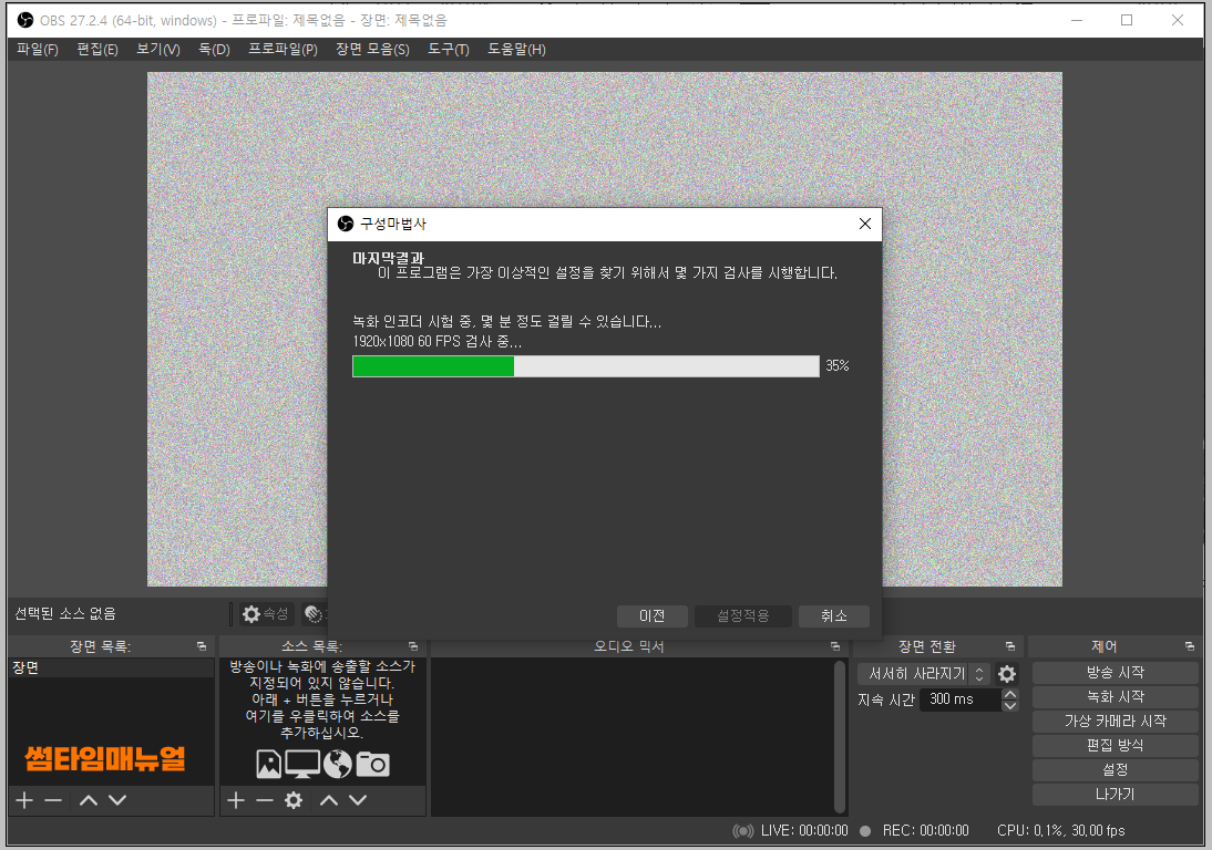 자동으로 녹화 인코더를 테스트하여 문제가 있는지에 대한 내용을 점검합니다