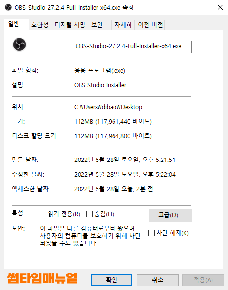 용량은 작성일자(2022-05-28) 기준 112MB 로 크지않아 오래걸리지 않게 다운받을 수 있습니다