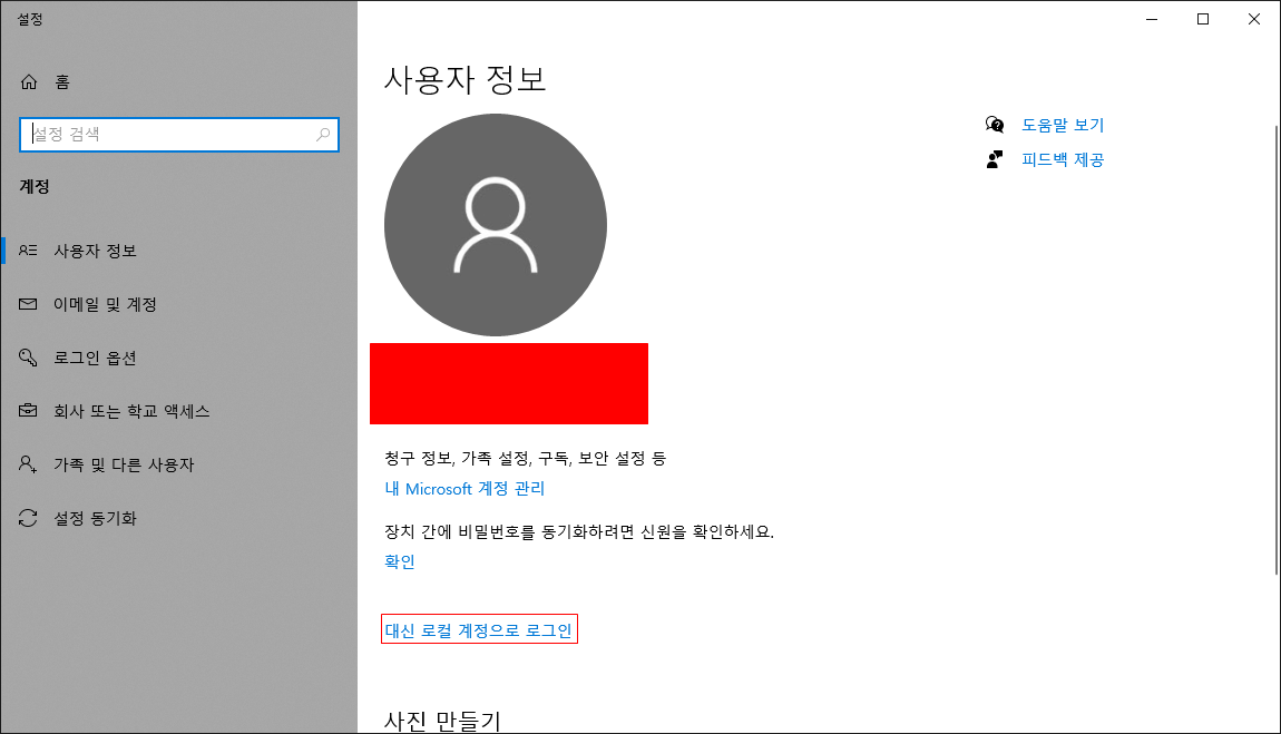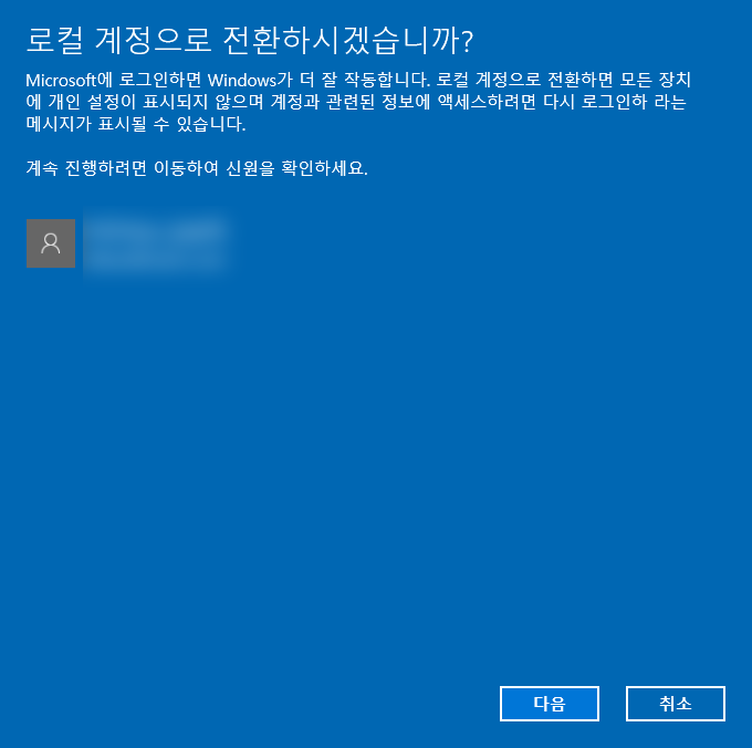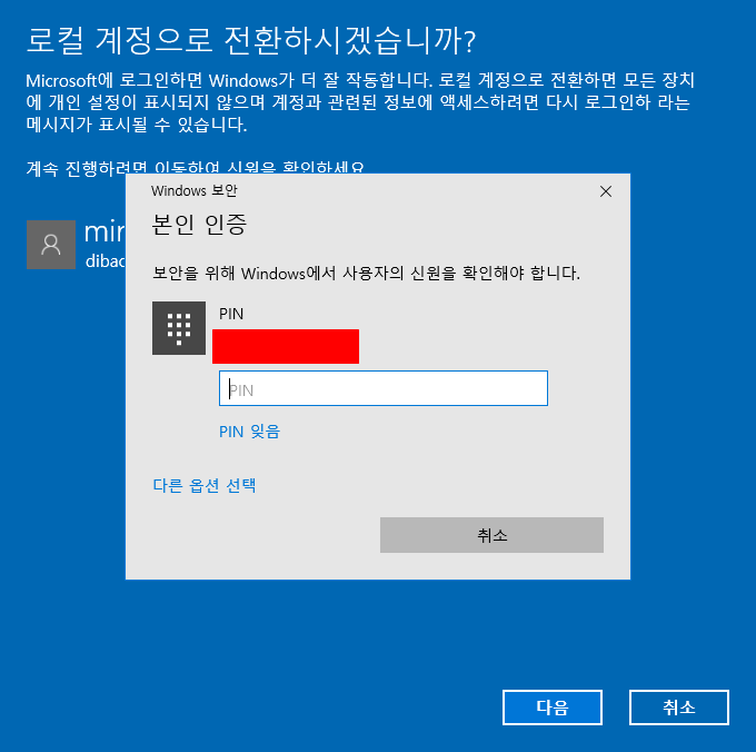 4.로컬 계정으로 전환