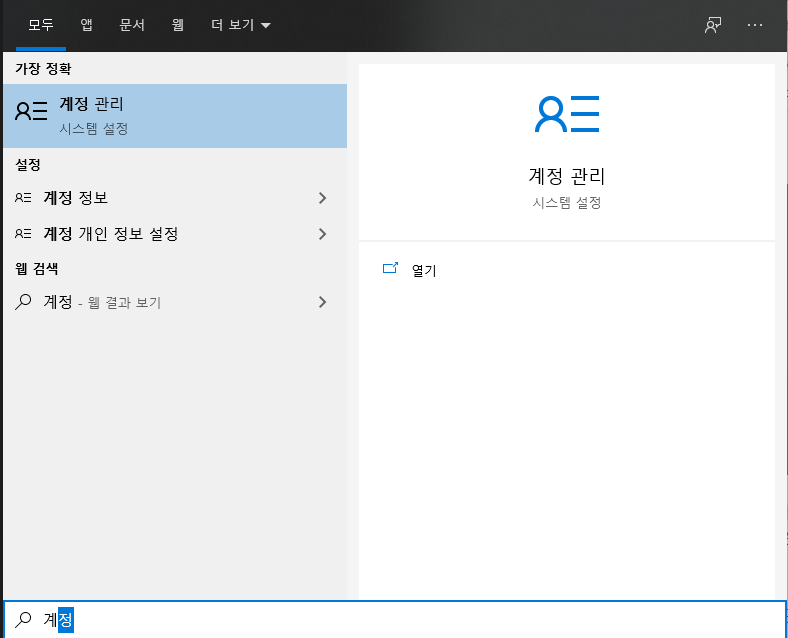 2. 계정 관리 입력 하여 시스템 설정의 계정 관리 메뉴로 이동한다