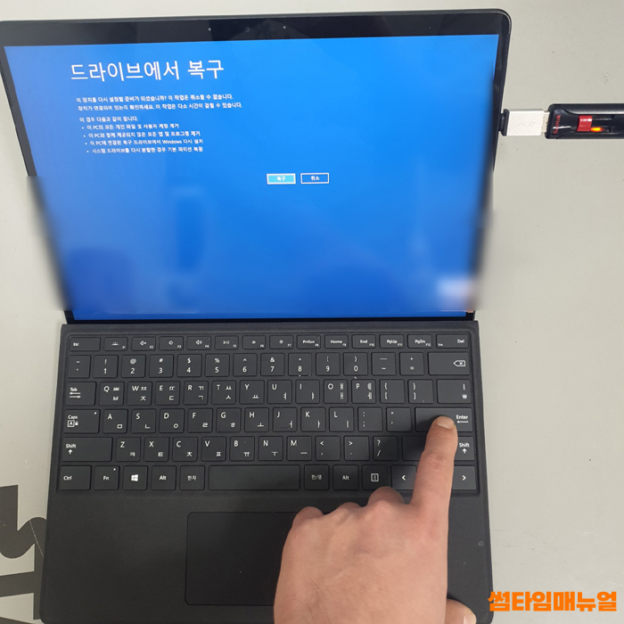 저장장치를 미리 서피스북에 연결해주도록 합니다